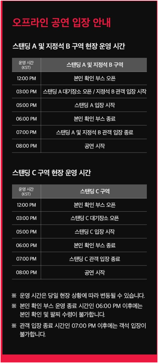 - 스탠딩 A → 빠른 입장 필요