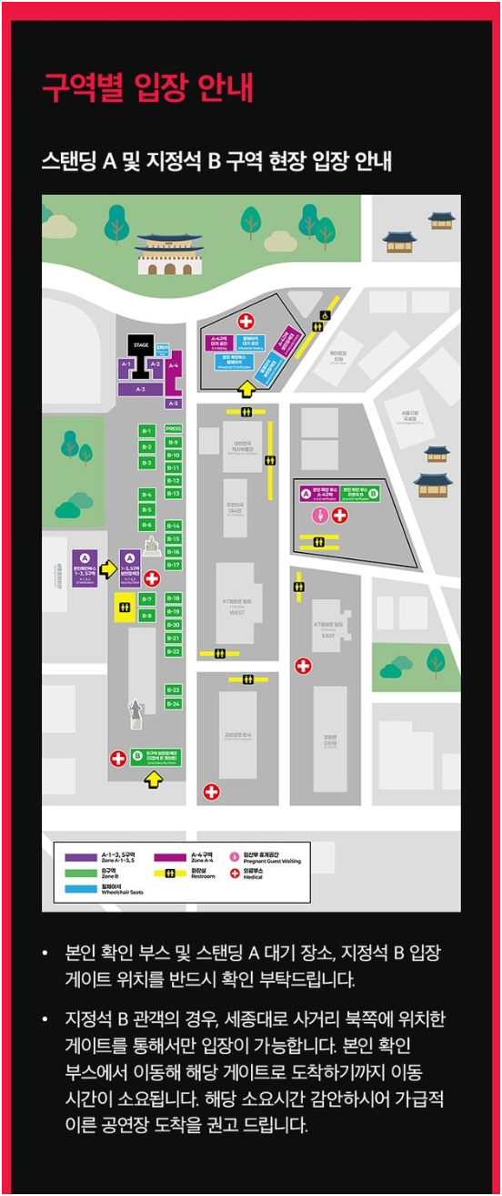 - 지정석 B → 게이트 지정 입장